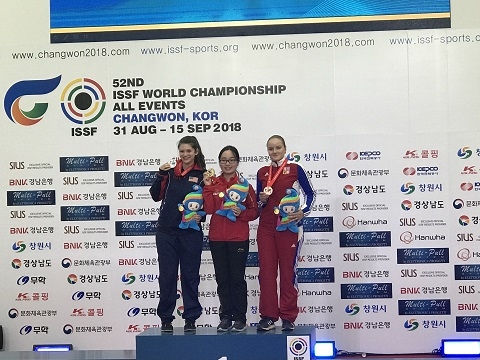 It is worth mentioning that this is the first time Wang Xiaoyu has participated in the ISSF World Championship. She shot consistently throughout the whole final, especially in the second half of the game. Distancing herself from United States’ 17-year-old Katelyn Morgan Abeln after firing four fantastic series at the end of the match, Wang finally won the championship with an overwhelming advantage. And the bronze medal was won by Anna Dedova from Czech Republic.