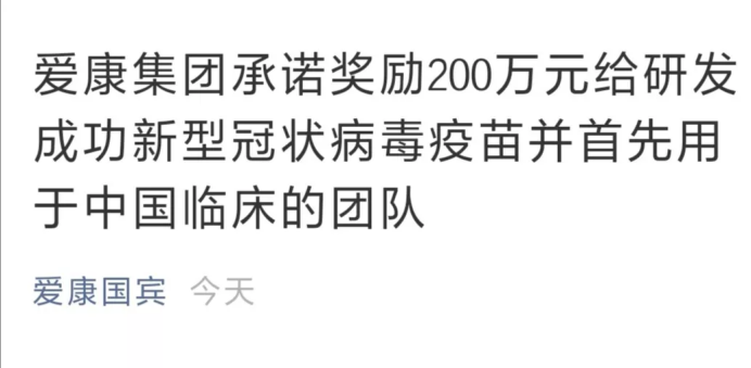AKCOME Group promised a reward of 2 million ($286,656) yuan to the first research team that has developed an effective novel coronavirus vaccine and made its first application for clinical treatment in China.