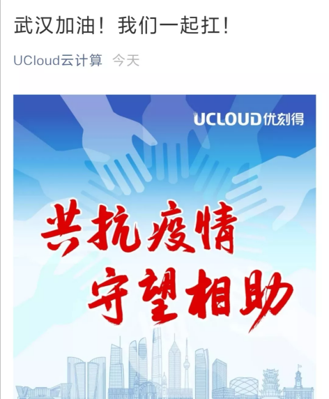 UCloud Technology Co Ltd, a cloud service provider, promised to offer free cloud computing services and technological support for programs related to outbreak relief in virus-stricken areas.