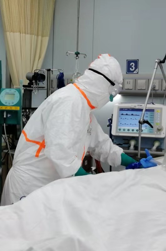 On the Chinese New Year’s Eve, a holiday valued greatly by Chinese for family union, Song Yuanlin, Director of Respiratory Medicine at Zhongshan Hospital of Fudan was urgently summoned to treat a COVID-19 patient in critical condition at the Center. Song and other medics closely monitored the patient’s breathing until 4 a.m. the next morning to make sure all the patient’s vital signs were stable.