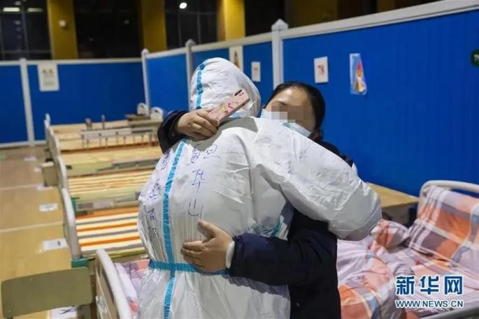 On the night of March 9, medics from Huashan Hospital hugged and best-wished the last patients to be discharged at Wuchang Module Hospital.