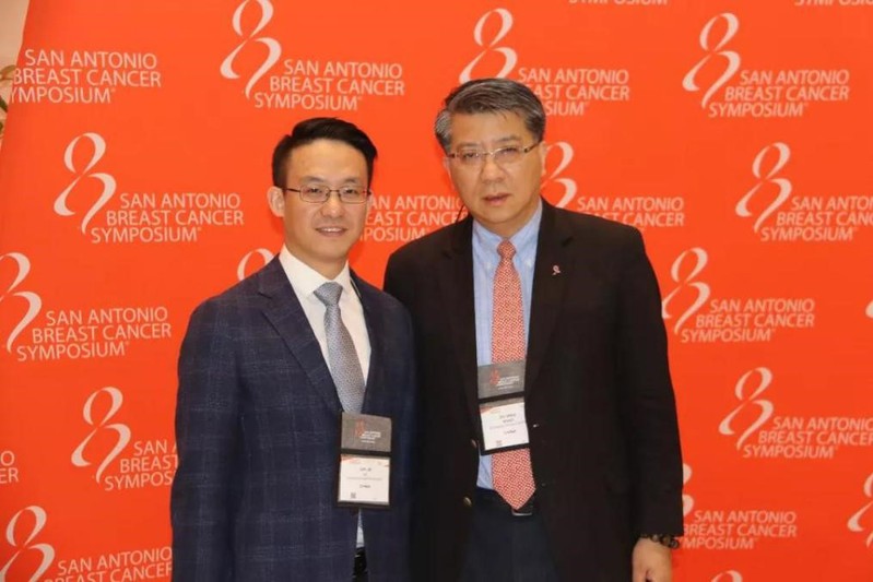 Professor Shao Zhimin (right) and Professor Li Junjie, a main contributor of the research, attend the 2019 San Antonio Breast Cancer Symposium
