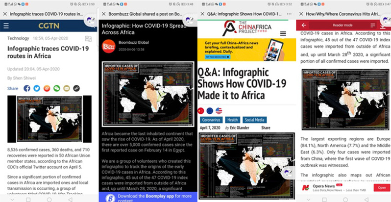 Yunong’s project “The Map of Imported Cases of Covid-19 in Africa” is reported by global news agencies.