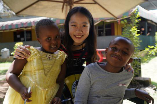 Yunong with local kids on her first day in Kenya
