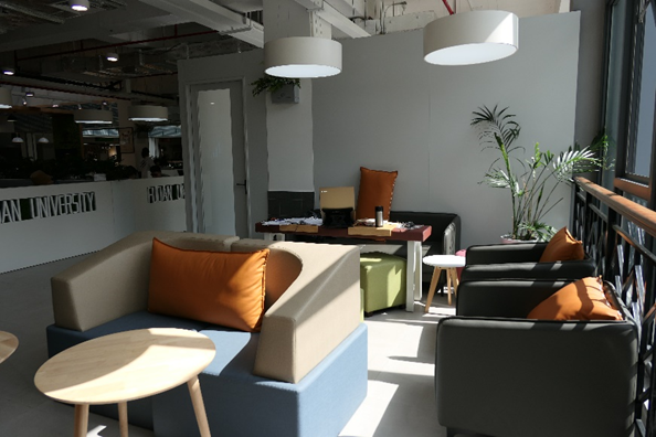 The canteen is now equipped with high-quality furniture, such as cozy tables and chairs, and easy-to-reach elevators. Trees, creating a fresh and natural atmosphere for relaxation, are planted both inside and outside the canteen.