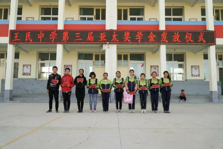 Students from Wangmin Middle School are conferred scholarships at a ceremony