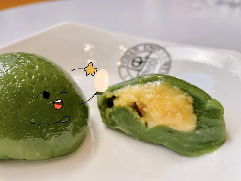Qingtuan with lotus seed paste and salted egg yolk filling