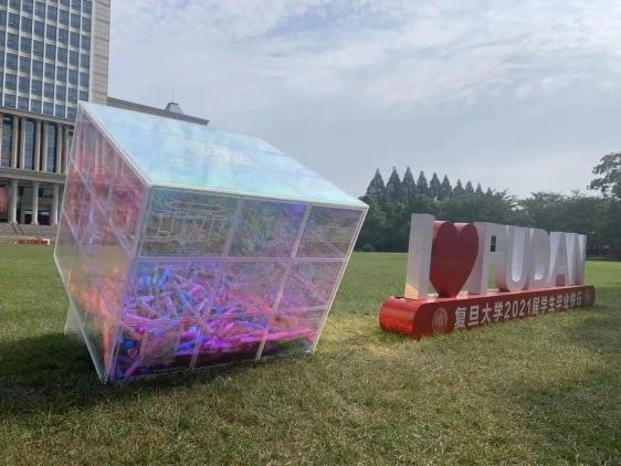 Undergraduates of the Class of 2021 prepared for the university a gift: a Rubik’s cube box called “Decision of Youth”. The outside of the transparent box is engraved with the emblem and motto of Fudan University, handwritten messages from 31 popular teachers who won the title of “Good Teacher in My Heart” and Fudan’s landmark buildings. Inside the box are the letters written by the undergraduates who expressed their love to their alma mater and their vision for the future.