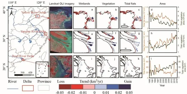 A substantial increase in saltmarsh area and a stable trend of tidal flat area since 2012, driven by reduced anthropogenic activities and increased conservation and restoration efforts has been found by Bo Li, professor at Ministry of Education Key Laboratory for Biodiversity Science and Ecological Engineering and National Observations and Research Station for Wetland Ecosystems of the Yangtze Estuary, Fudan University, and Xiangming Xiao, professor at Center for Earth Observation and Modeling, University of Oklahoma. These coastal wetland maps for the period 1984–2018 are invaluable for improvement of coastal wetland management and sustainability in China.
