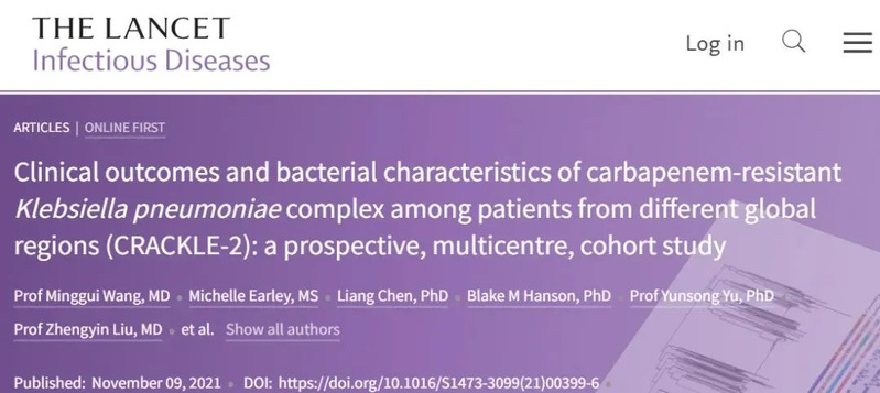 The research article entitled “Clinical outcomes and bacterial characteristics of carbapenem-resistant Klebsiella pneumoniae complex among patients from different global regions (CRACKLE-2): a prospective, multi-centre, cohort study” has been published in Lancet Infect Dis.