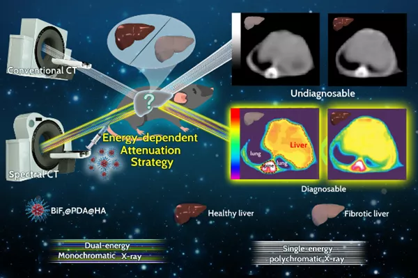 Moreover, an X-ray energy-dependent attenuation strategy originated from bismuth (Bi)-based nanoprobes (BiF3@PDA@HA) has been proposed for the accurate diagnosis of liver fibrosis by Zhenwei Yao and Wenbo Bu, professor at Department of Materials Science, Fudan University. As a proof of concept, the strategically designed nanoprobes with energy-dependent attenuation characteristics not only expand the scope of CT application, but also hold excellent potential for precise imaging-based disease diagnosis.