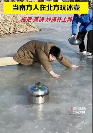 Another video shows a man in Inner Mongolia, a freezing province in northern China, cut a chunk of ice into a fairly passable replica of a curling stone.