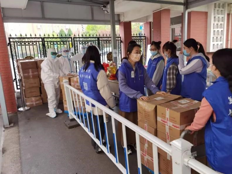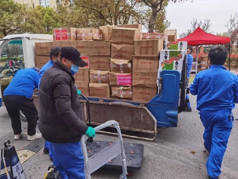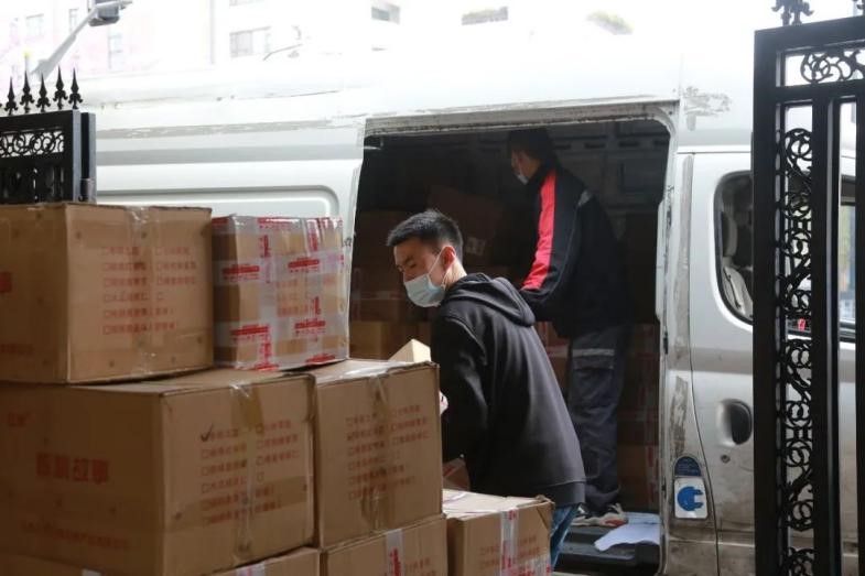 On March 26, 30,000 bags of walnut products donated by Yongping E-commerce Center and 2,112 bags of pickles donated by Yongping’s Aqingsao Food Company arrived at Fudan University.