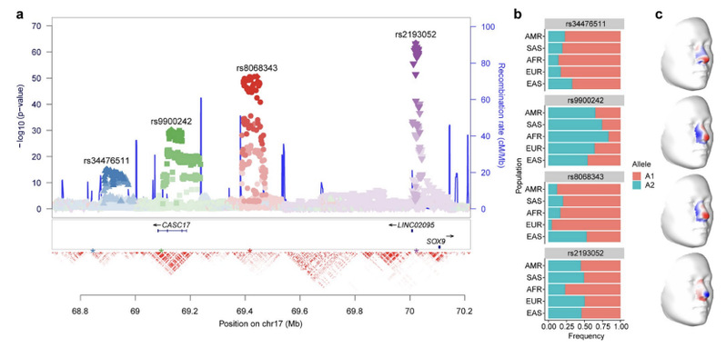 The researchers identified 244 genetic variants affecting facial morphology in the EAS population based on multivariate canonical correlation analysis, confirming that facial features are typically complex traits influenced by multiple genes.