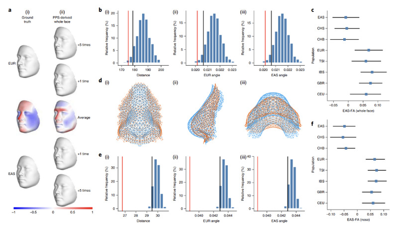 According to the study, the differences in actual facial morphology among EUR and EAS populations are highly consistent with the features simulated by PSA, and 13 genetic factors associated with facial features specific to EAS populations have been identified.