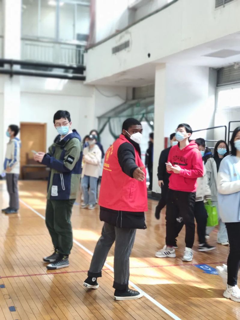 Molua Njumbe Smith Ikome, a Cameroonian PhD student from the School of International Relations and Public Affairs, also helped maintain the order of on-site nuclear acid testing in the North Residential Quarter of Handan Campus. He spoke highly of the collaboration between the Chinese student volunteers and the international student volunteers. “Just seeing the level of commitment and hard work of my peers makes me proud to be a Fudan volunteer. I’d like to applaud all relevant departments for their unwavering expertise and dedication toward combating the virus.”