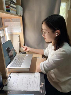 In the past two months, the site where Kangqi won the championship of the pre-selection, semi-final and final competitions was in fact her dorm room in the North Residential Quarter of Handan Campus due to the closed-loop policy. She kept in regular contact with her coach Prof. Shi Lina, who provided Kangqi with professional advice on her content and helped her polish the speech drafts.