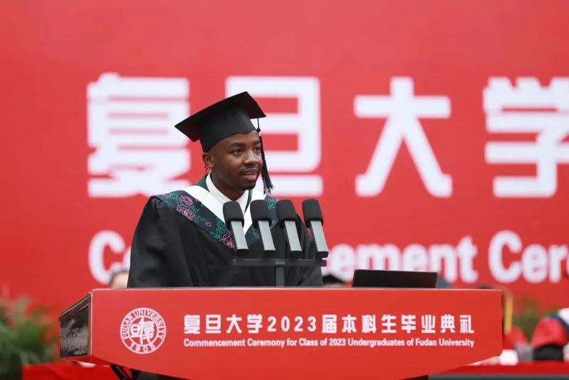 Pascal Kwangari, an international student from Zimbabwe and representative of the Class of 2023, thanked Fudan for helping him turn his medical dreams into reality. He stressed that classroom learning on campus and clinical internships at hospital provided him with theoretical knowledge, clinical skills and invaluable experiences. He hoped that one day, he could take what he learned back to save lives back in his home country.