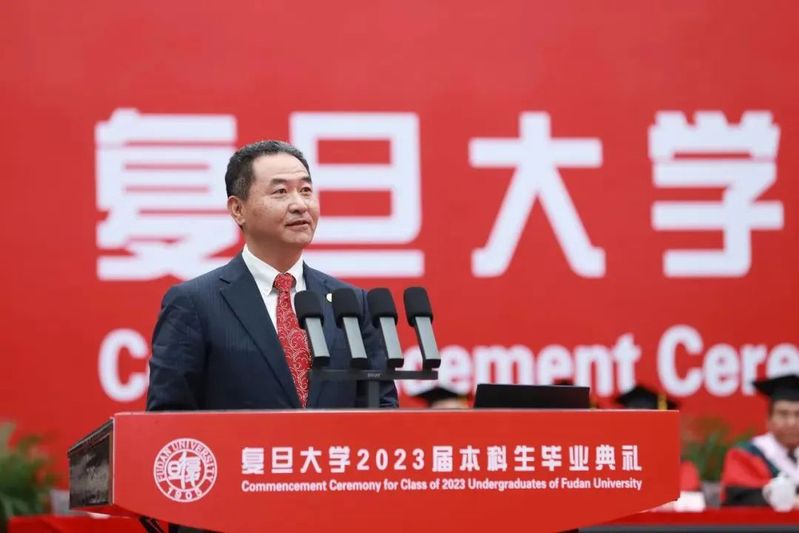 President of Fudan University Jin Li delivered an inspiring speech in which he urged the Class of 2023 to cultivate their intrinsic motivation to strive for greatness. He suggested three ways for students to motivate themselves: to see the development of the country and the needs of the people as one’s own responsibility, to find one’s passion for life and keep up the hard work, and to be keen on pursuing excellence and pushing past one’s limits.