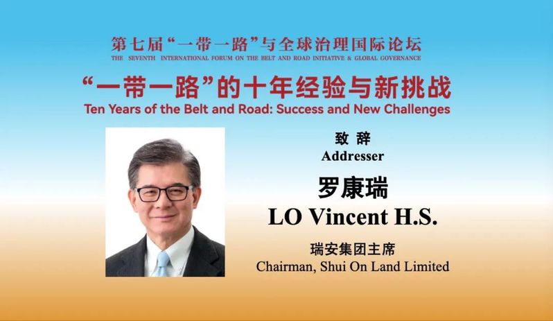 Vincent Lo, chairman of Shui On Land Limited, conveyed congratulations and wishes to the Forum by letter, emphasizing the growing significance of a high-quality BRI in the context of global economic trade and openness amid a complex international milieu.